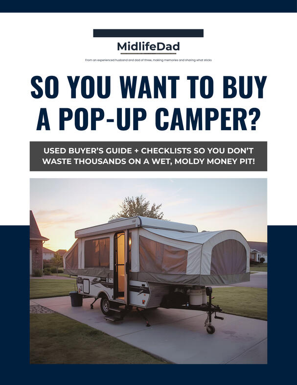 I wasn't looking for an adventure. I was looking for real beds.Tent camping with a family is great— until it isn't. The kids sleep great. Your wife is a trooper. You're the one awake at 2am on a deflating air mattress wondering when exactly this became your idea of a vacation.I live in suburban Southern California. Storage fees for a travel trailer would eat the budget before we ever left the driveway. A truck to tow one? Didn't have it. A $35,000 loan for something I'd use ten weekends a year? Wasn't in the cards.So I did what any slightly obsessive dad does — I researched everything. Spent way too much time on Facebook Marketplace. Used pop-up campers kept coming up. Affordable. Towable with an SUV. Real beds. Heat. A stove. A refrigerator. And, here is the key, could fit in my three-car garage.I found a 2011 Coleman Evolution SV3. Two previous owners. Amazingly, used maybe three times in its life and I purchased it for less than $4,500.Turns out I got lucky — it was in exceptional shape. But I only knew what to look for because I'd done the homework first. That homework became the free guide below.Less than one year in, my family is making memories and having a blast. I'm already pushing every friend I have to do the same thing.That's what this is. A midlife dad who found a practical solution and genuinely can't stop talking about it.